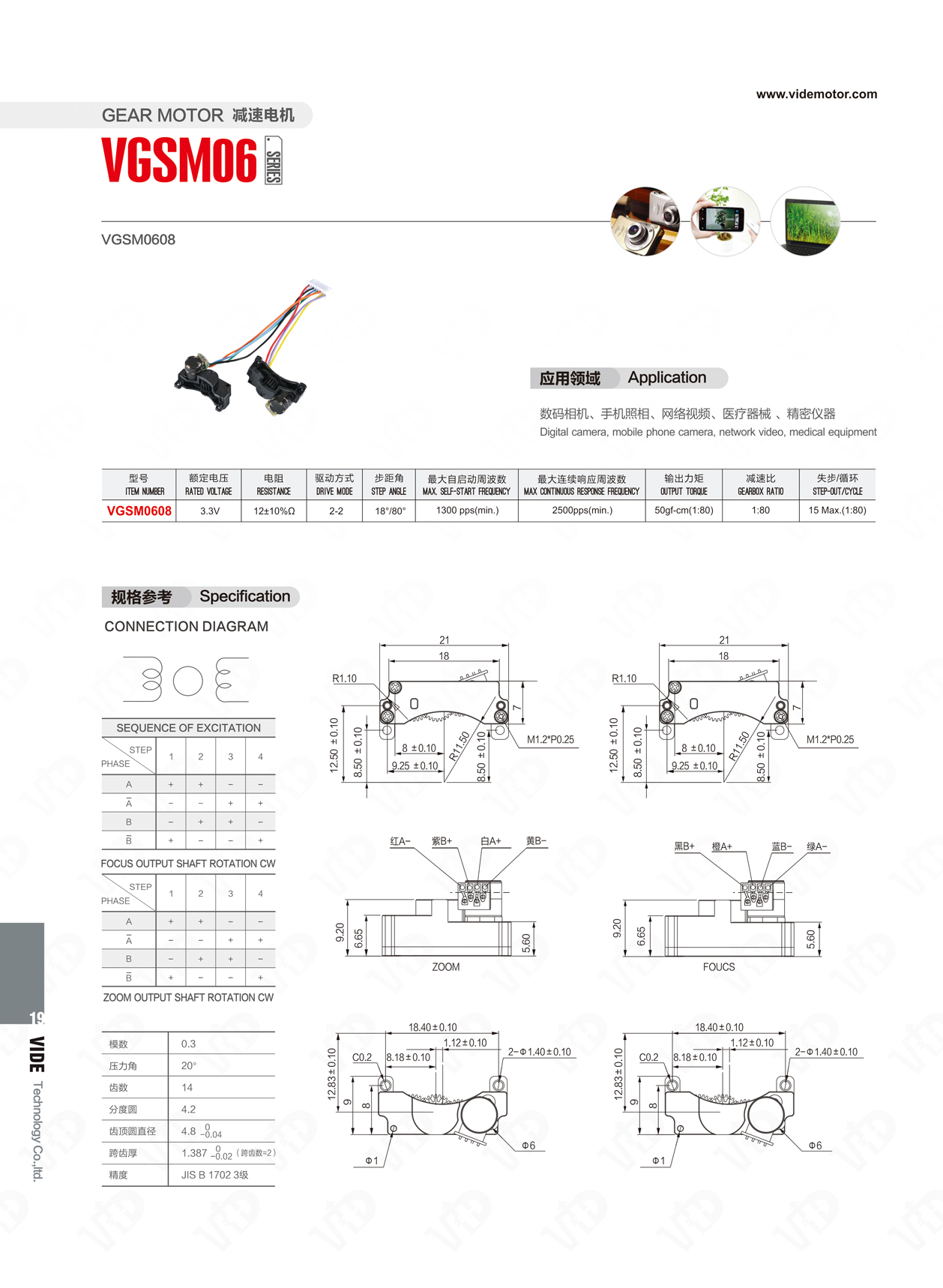 応⽤分野:デジタルカメラ、携帯電話カメラ、ネットワークビデオ、医療機器、精密機器